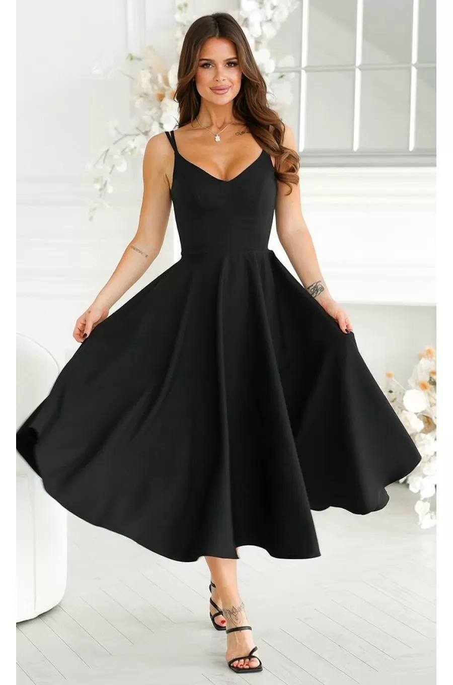 Rochie midi neagra cu bretele subtiri